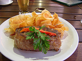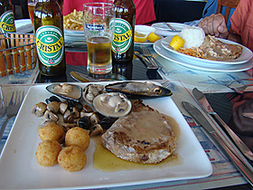 San Pedro de Atacama - vynikající kuře s rýží a oblohou (6500 CLP) Valparaiso - mečoun, škeble a krokety