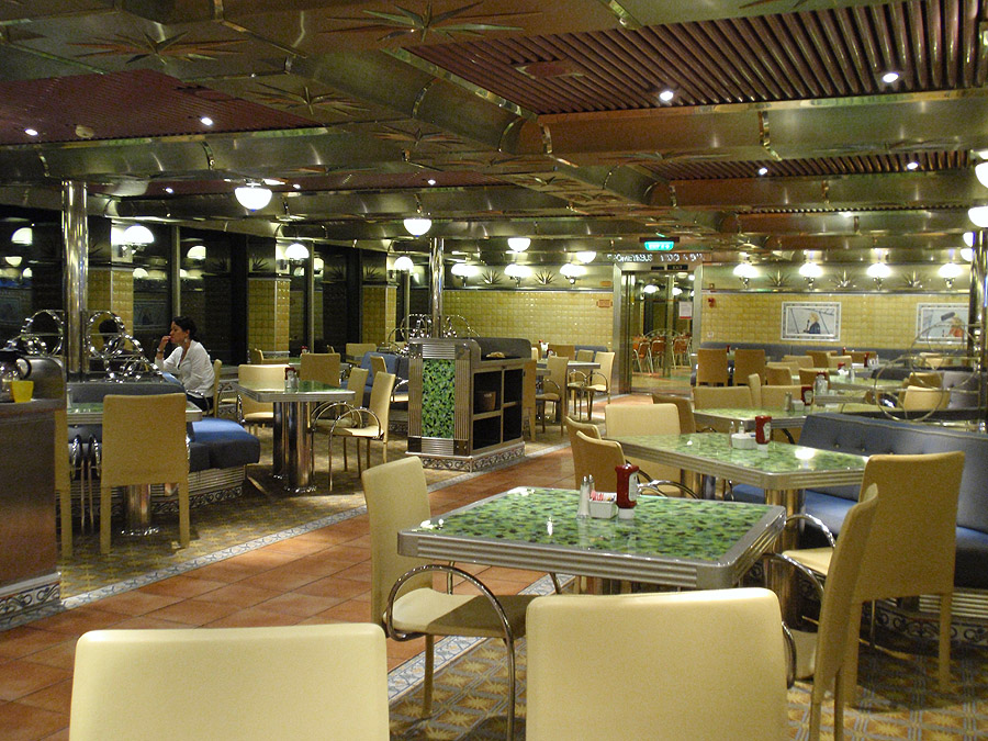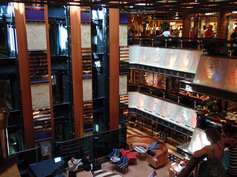 Lincoln Restaurant na 4.palubě   American Loby s prosklenými výtahy
