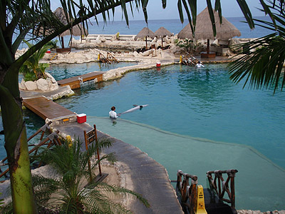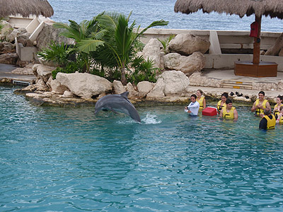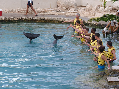 Na dnešek jsme si zaplatili plavání s delfíny (100USD/os.). S příslušnou skupinkou spolucestujících jsme se proto hned po příjezdu přesunuli do nedalekého delfinária na okraji San Miguel de Cozumel.