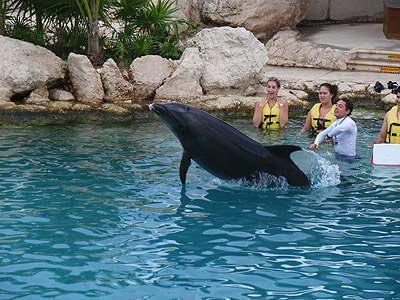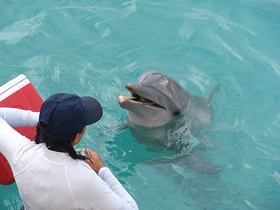 Byla to velice zajímavá zkušenost, zdejší průvodce nám podrobně i s ukázkami popsal delfinní anatomii, povyprávěl něco málo o jejich životě a samozřejmě jsme si mohli s vybranými kytovci (Tina a Ego) v rámci velmi omezených možností i trochu zadovádět.