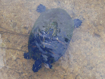 A v mokřadu se brzy objevily také želvy rodu Trachemys, které u nás známe spíše ze zverimexů...   Odpoledne jsme zamířili zpátky na Miami Beach s krátkou zastávkou na oběd v Burger Kingu ve městě Homestead. Zpátky jsme to tentokrát vzali po neplacené silnici, bohužel to nebyl dobrý nápad - byl to tam samý semafor a před Miami začal znatelně houstnout i provoz. Sotva jsme se v podvečer trochu smočili v Atlantiku, přihnala se bouřka a my doběhli do hotelu celí promočení...