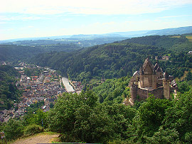 výhled na město Vianden a řeku Our hrad Vianden výhled na hrad z podhradí