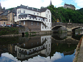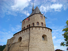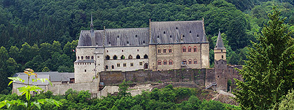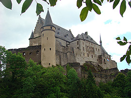 Vianden je vedle Luxembourgu nejdůležitějším turistickým místem Lucemburska. Dominantou městečka s 1600 obyvateli je totiž středověký hrad, který se tyčí na skalním ostrohu nad malebnou říčkou Our. Nejstarší části hradu pocházejí z 11.století a stojí na místě původní mnohem starší římské pevnosti. Ve 12.století byl hrad sídlem hraběcího rodu Viandenů, kteří o svou rezidenci přišli v roce 1264 v dědickém sporu s Lucemburgy. Ti zde poté sídlili až do roku 1417 a pro nás Čechy není bez zajímavosti, že se právě ve Viandenu 10.srpna 1296 narodil český král Jan Lucemburský! V roce 1417 hrad připadl dynastii Nassau, která jej však již jako rezidenci nevyužívala. V roce 1820 hrad prodal král William I. místnímu obchodníku, který většinu hradního invetáře rozprodal. To co zbylo postupně chátralo a teprve když bylo vlastnictví hradu převedeno na vládnoucí lucemburskou Velkovévodskou rodinu, byla zahájena dloudobá nákladná rekonstrukce. Bohužel jak se mohou návštěvníci hradu přesvědčit, probíhá tato rekonstrukce místy dost necitlivě, nicméně hrad je znovu po dlouhé době nepřehlédnutelnou malebnou dominantou údolí řeky Our. Vstupné do hradu dnes činí 5,5 Euro.
